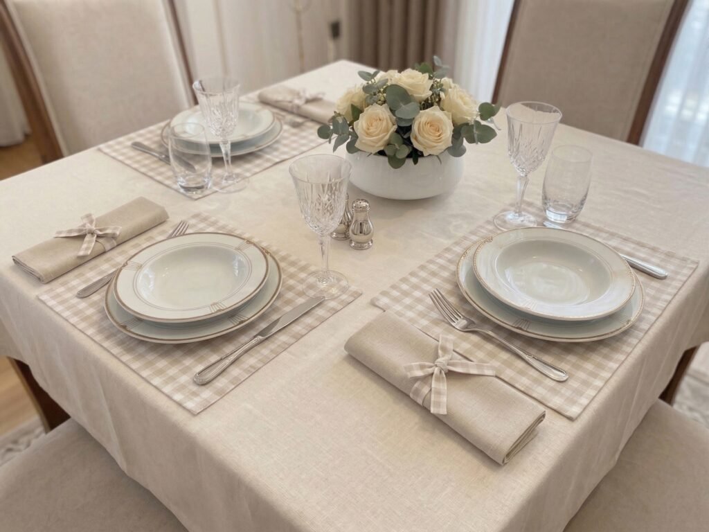 Beige Gingham Runner, Linen Placemats, Napkin Set, Handmade Dining Table MatsFiyat aralığı: $118.73 – $313.47 -